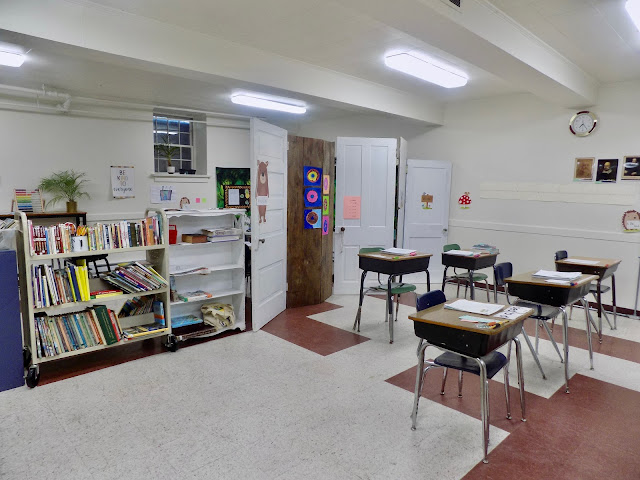 Adjacent to this classroom is the third and fourth grade room. The hinged door divider from our very first year of school was brought out again to separate the first and second grade room from the third and fourth grade room.